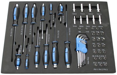 Segunda gaveta: bits de soquete, chaves sextavadas, de chaves de fenda.