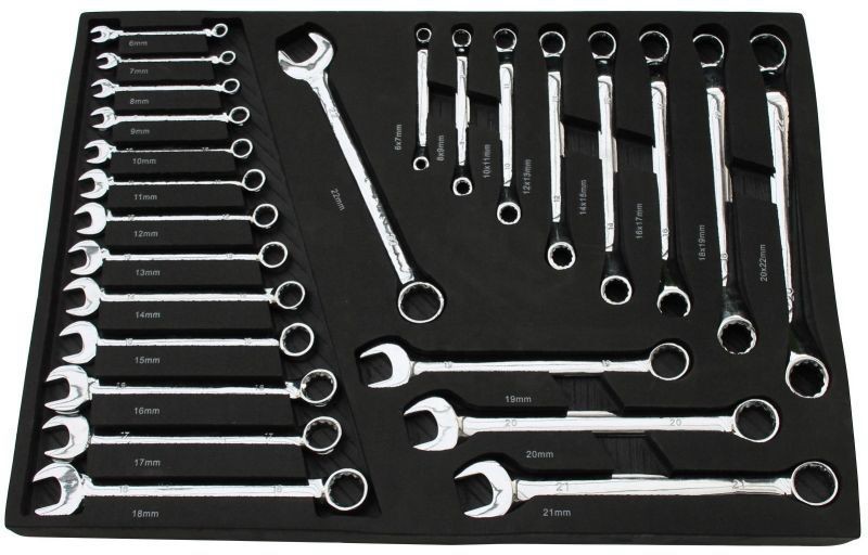 Terceira gaveta: chaves combinadas, chaves de anel.