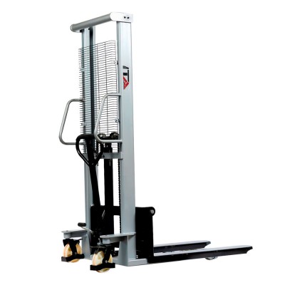 Empilhadeira Hidráulica Equipamento manual para elevação e movimentação de cargas, tipo paleteira/empilhadeira hidráulica, de ação descontinua construção metálica, para capacidade até 1000KG.