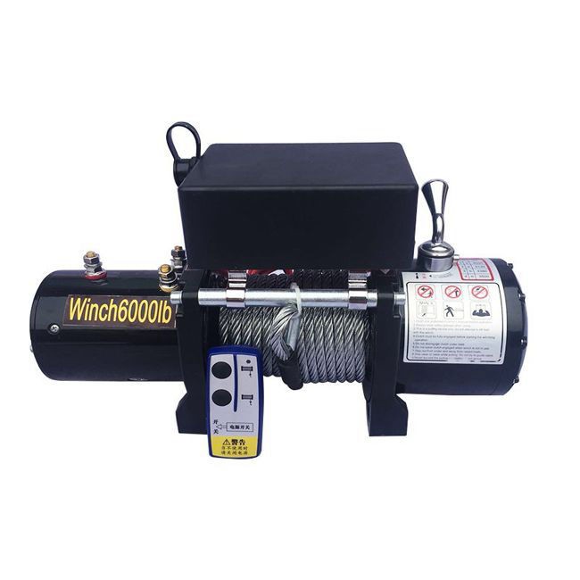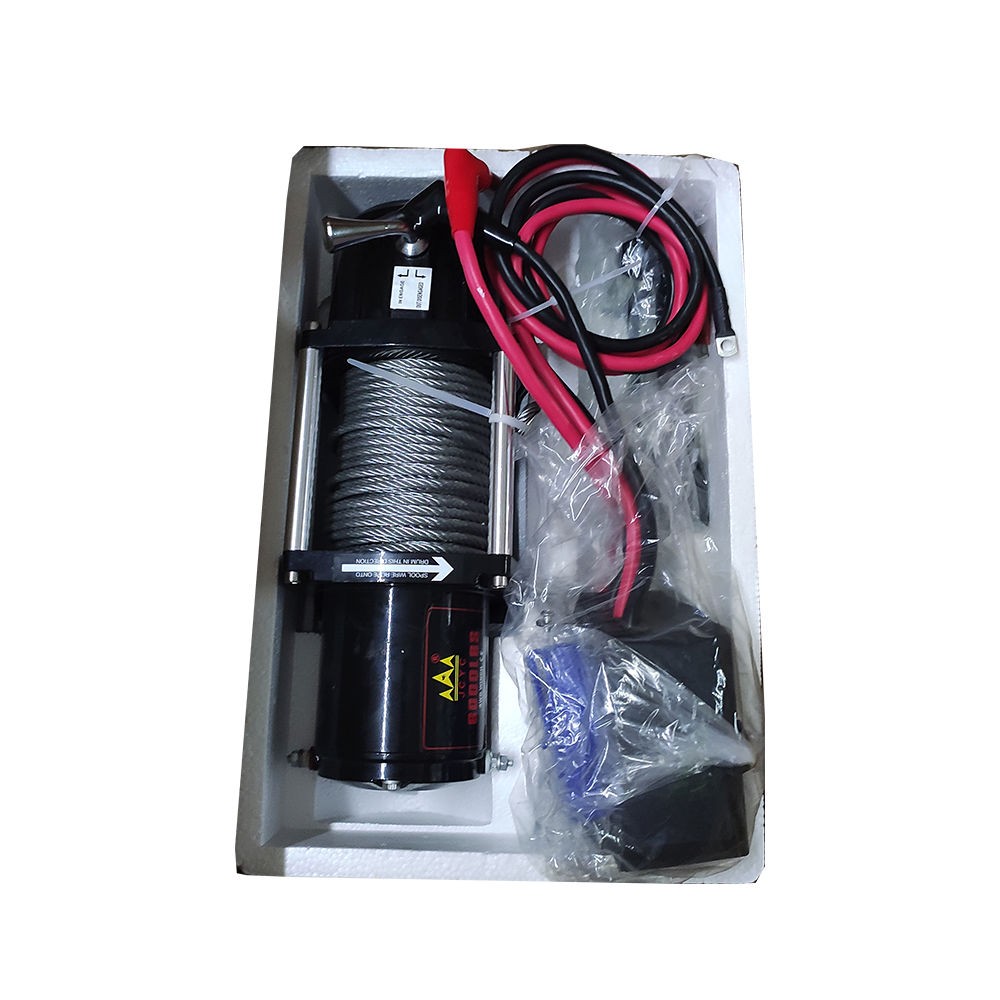 Guincho Automotivo com motor elétrico, capacidade máxima de elevação de 2.722 Kg, 12/24v, para retirada de veículos presos ou outros itens pesados. Com controle Remoto. Motor de 2.4 Hp/1.8Kw. Comprimento do cabo de 24 metros.