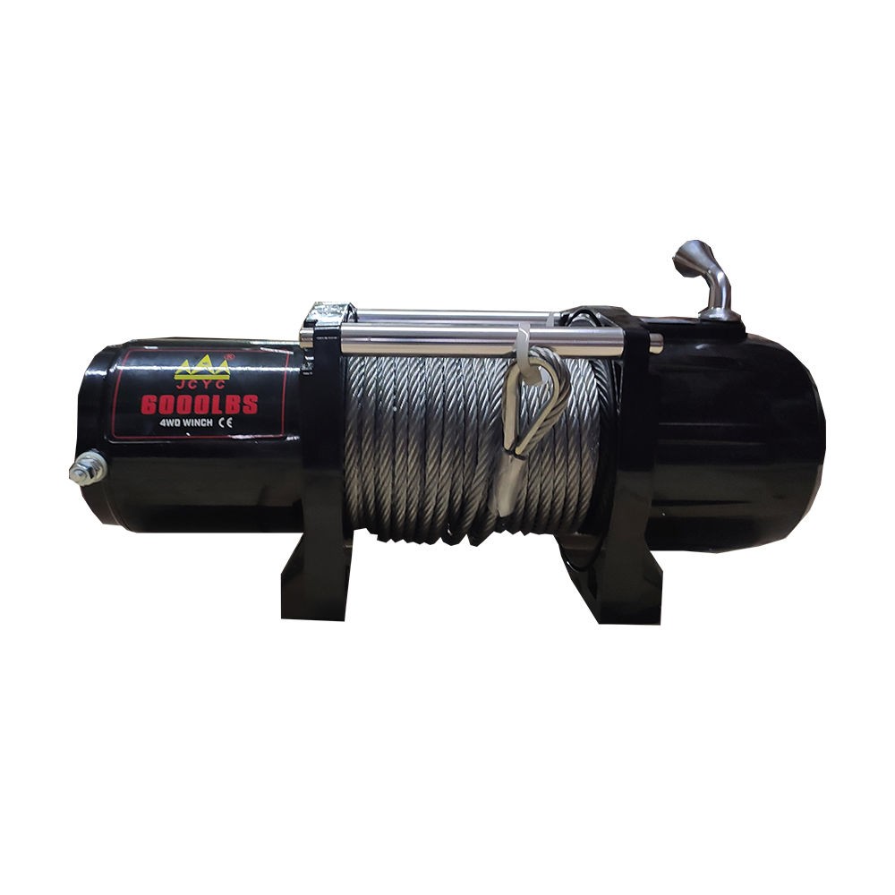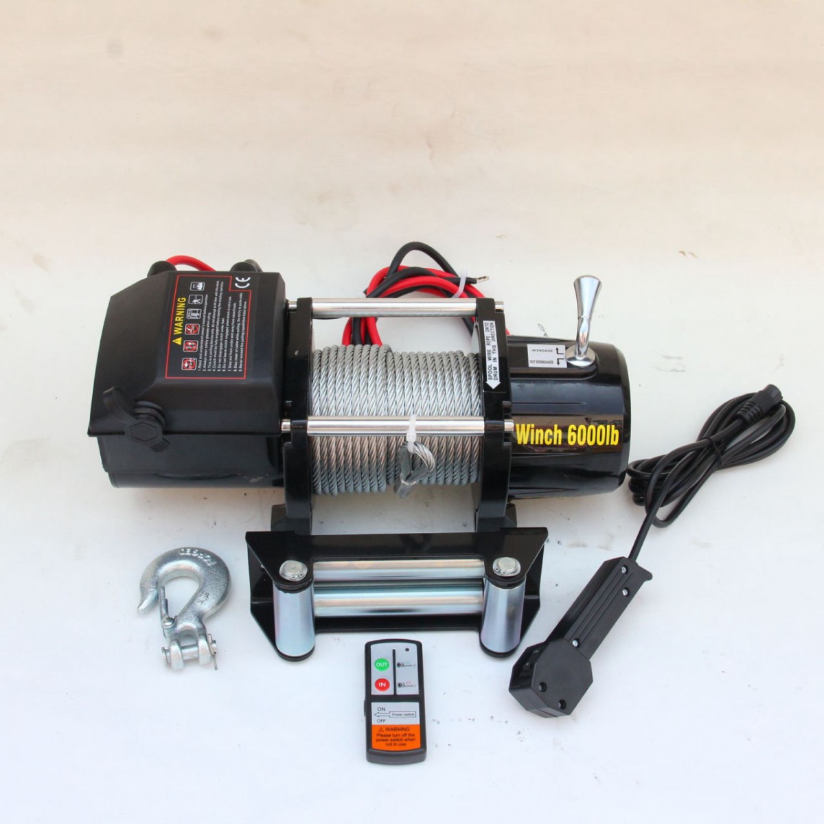 Guincho Automotivo com motor elétrico, capacidade máxima de elevação de 2.722 Kg, 12/24v, para retirada de veículos presos ou outros itens pesados. Com controle Remoto. Motor de 2.4 Hp/1.8Kw. Comprimento do cabo de 24 metros.