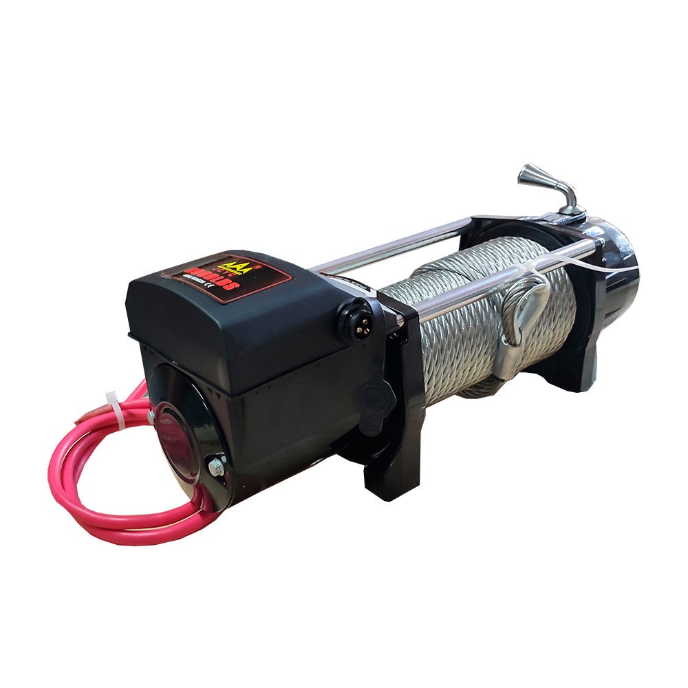 ACIONADO POR MOTOR DE TRAVA MAGNETICA DE 12/24V CORRENTE CONTINUA COM POTENCIA DE 5.5HP/4.0KW, CAPACIDADE MAXIMA DE TRACAO DE 8.000 LIBRAS (3.629KG), DOTADO DE CONJUNTO DE ENGRENAGENS DO DIFERENCIAL COM RELACAO 265:1, COM CORDA DE ACO, DISPOSITIVO DE TRAVAGEM AUTOMATICA, CABO DA BATERIA COM 3 METROS, ACIONADO POR CONTROLE REMOTO SEM FIO, CAIXA DE CONTROLE CENTRAL, FABRICACAO: 2022