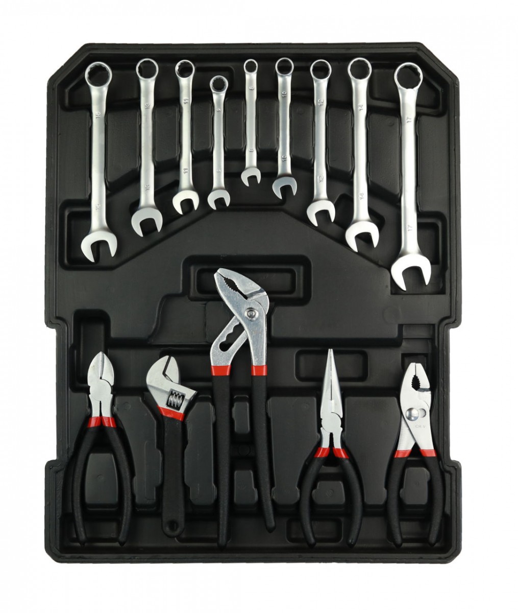 Maleta com ferramentas Cromo Vanádium 186 peças, com rodinha para fácil transporte, feito para uso diverso. Maleta super resistente e durável.