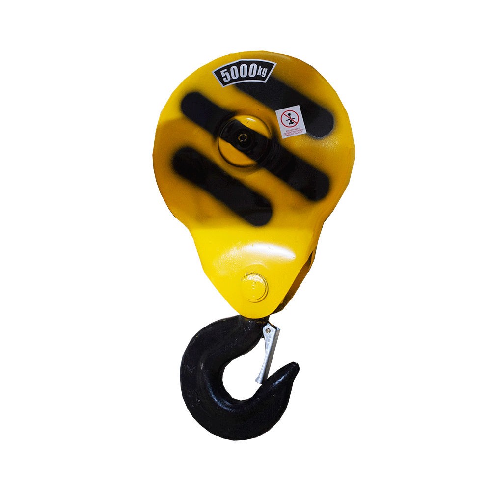 Talha de motor elétrico, com capacidade máxima de elevação de 5.000 Kg, com cabo de aço extensivo a 9 metros, trifásico, 60hz de frequência, 220/380v, 1380rpm, para içamento e deslocamento horizontais de cargas, velocidade dupla de 8 metros por minuto e 4 metros por minuto. Muito resistente e confiável, testado e aprovado. Não indicado utilizar sempre em sua potencia máxima, podendo assim diminuir a vida útil.